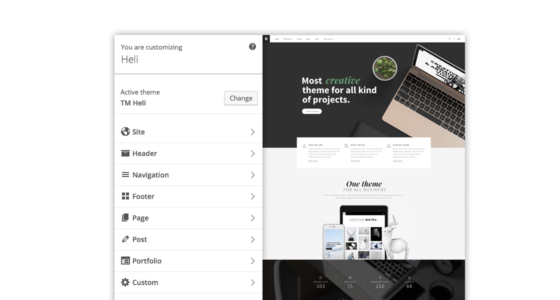 Don’t need to be a tech-savvy to create your amazing WordPress site with Heli. It’s truly drag & drop page builder multipurpose theme.